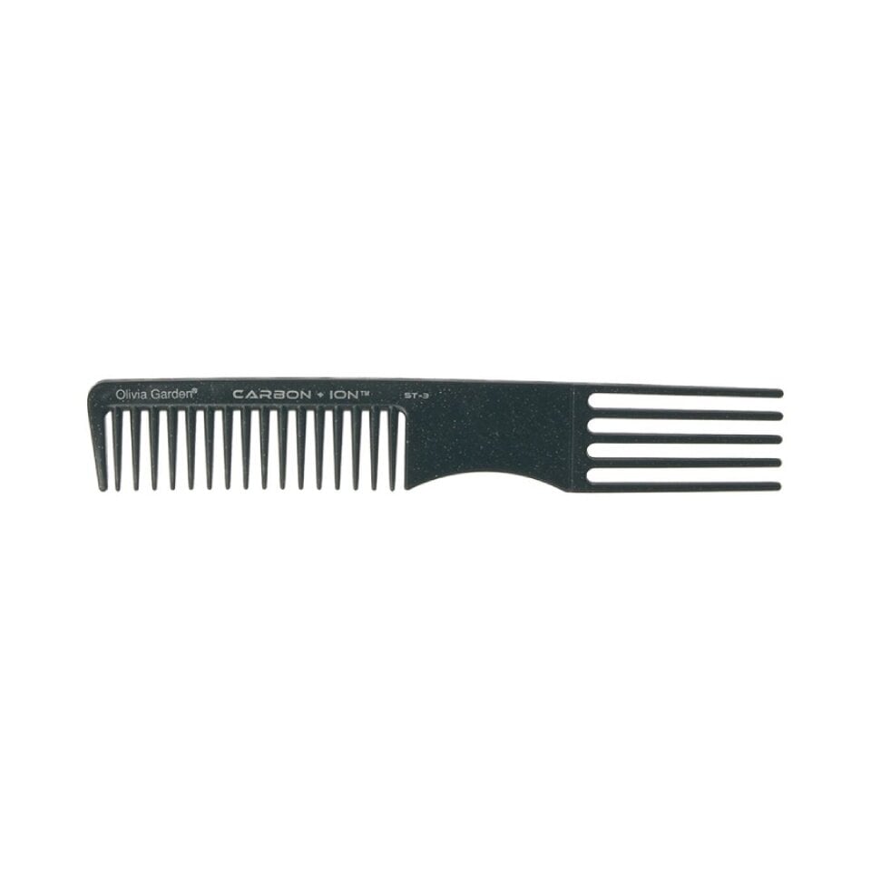 Olivia Garden Carbon-Ion ST-3 este un pieptene profesional realizat din carbon de înaltă calitate, conceput pentru tunsori de precizie, tehnici de styling și secționări perfecte. Datorită tehnologiei Carbon-Ion, pieptenele este antistatic, extrem de ușor, flexibil și rezistent la temperaturi ridicate, prevenind electrizarea și oferind o alunecare lină prin toate tipurile de păr.