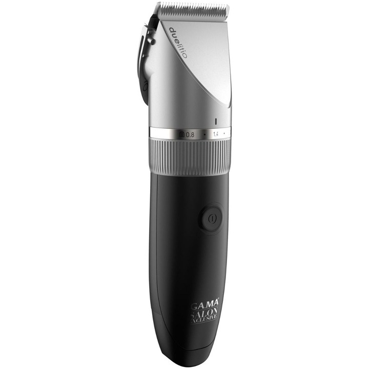 Masina profesionala pentru tuns parul Due Litio este prima masina Ga.Ma proiectata cu 2 baterii litiu foarte puternice. Dureaza doar 2 ore pentru a obtine o autonomie de 120 de minute pentru fiecare baterie, deci 240 minute in total pentru amandoua. Suportul de incarcare este proiectat cu doua spatii, unul pentru masina+baterie si unul pentru bateria de rezerva. Puteti lucra in siguranta si fara emotii, deoarece aveti o baterie de rezeva care este mereu incarcata in suportul special. Lama sa ultra-ascutita din otel inoxidabil asigura o taiere delicata si precisa si un mod de lucru rapid si eficient. Ofera 5 ajustari ale inaltimii lamei de la 0,8 mm la 2,0 mm și 4 piepteni suplimentari de ghidare care permit lungimi diferite de taiere a parului de la 3 la 12 mm. Este un aparat foarte versatil, datorita functiei fara fir, acesta poate fi utilizat cu sau fara cablu. Capul lamei este detasabil pentru a facilita curatarea si intretinerea zilnica cu ajutorul setului de utilizare din interiorul ambalajului.