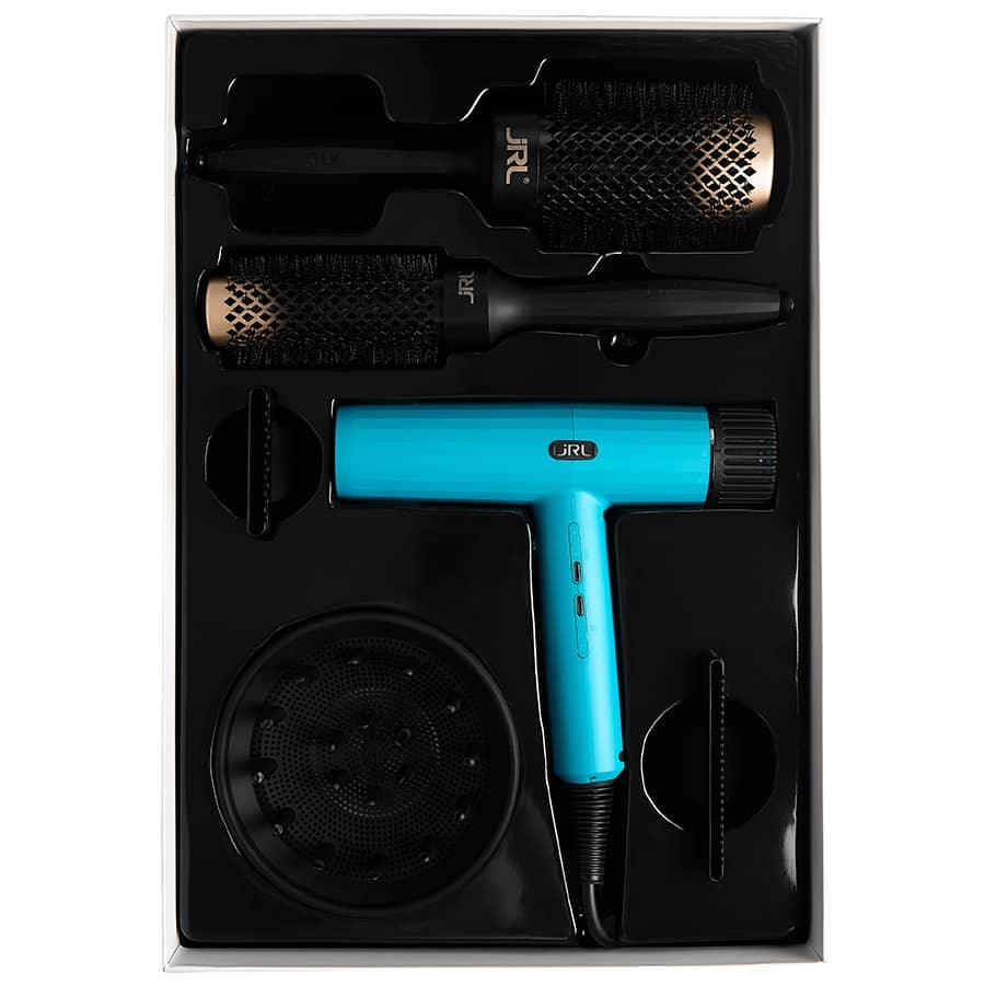 Set Uscător de Păr JRL Forte Pro Sapphire Blue + 2 Perii – Uscător Profesional 90.000 RPM Ionic
