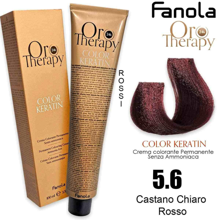 Vopsea de Par 5.6 Permanenta Fara Amoniac - Color Keratin Oro Puro 24K Castaniu Rosu Deschis