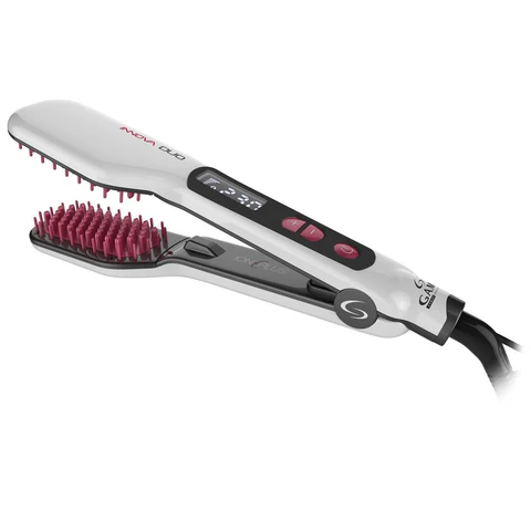 Peria dubla pentru indreptat parul - Cu aceasta perie puteti indrepta, descalci si aranja orice tip de par, repede si usor. Are o temperatura ajustabila de la 150C la 230C, intotdeauna sub control datorita display-ului LCD. Tehnologia cu Ion Plus neutralizeaza incretirea si lasa parul moale si stralucitor. Tehnologia cu Ceramica ofera parului delicatete maxima, in timp ce tehnologia Nano Silver elimina bacteriile din par, astfel el ramane curat si sanatos. In plus, caldura emanata de aceasta garanteaza cea mai sigura emisie de caldura. Peria a fost fabricata cu un sistem de auto inchidere care se activeaza dupa 60 de minute de la pornire, pentru o siguranta maxima.