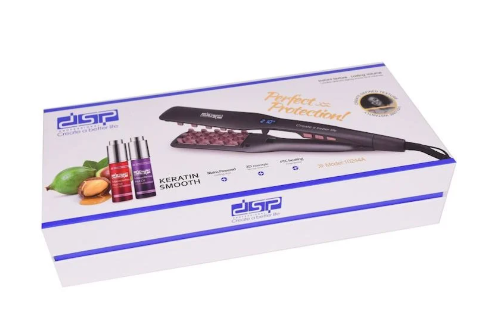 Placa de creponat este realizata din aluminiu cu invelis din ceramica si incalzitor PTC, pentru a ajuta la distribuirea uniforma a caldurii fara sa afecteze firul de par.