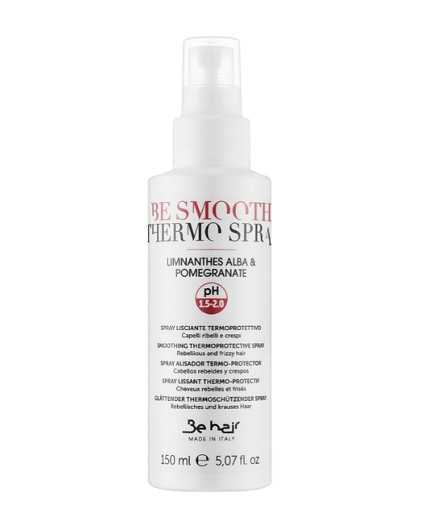 Thermo Spray Be Smooth 150ml de la Be Hair este un spray termoprotector profesional, special creat pentru păr drept, rebel sau cu tendință de frizz, care are nevoie de protecție eficientă împotriva temperaturilor ridicate generate de uscător, placă sau ondulator.
