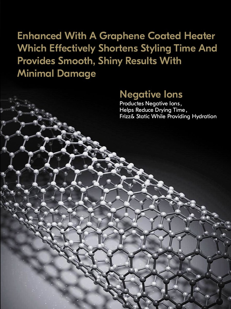 - Incalzitor Acoperit cu Grafen: Elementul de incalzire este acoperit cu grafen. Aceasta tehnologie avansata contribuie la scurtarea timpului de styling. Protejeaza parul de daune termice excesive. Ajuta la obtinerea unui aspect neted si lucios.