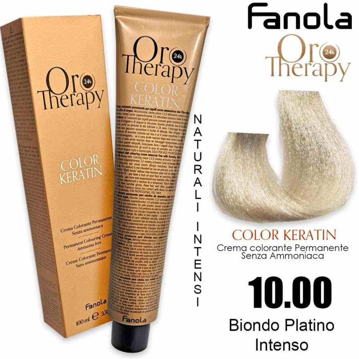 Vopsea de Par 10.00 Permanenta Fara Amoniac - Color Keratin Oro Puro 24K Blond Intens Platinat
